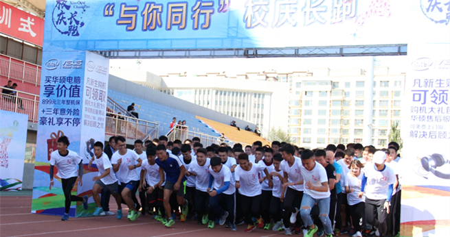 为纪念“9·22”校庆日,凝聚师生荣校爱校的意识,营造健康向上的校园文化氛围,继续保持庆祝自治区成立70周年的高昂热情,以优异的成绩迎接党的十九大胜利召开,9月28日下午3点,“与你同行”校庆长跑活动在校田径场隆重举行,本次活动由校团委、工会、体育教学部联合组织。校党委常委、副校长任慧平为本次长跑打响发令枪。