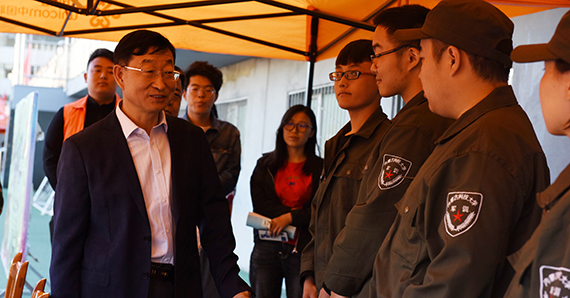 9月7日下午,校党委副书记、校长安胜利,校党委常委、副校长冯志强在相关负责人陪同下来到2018级新生军训场地校田径场,看望慰问军训团承训教官及全体参训师生。走进训练场,安胜利和冯志强亲切询问新生们的军训情况,与辅导员、教官代表一一握手,并在服务站查看了药品箱等应急措施准备状况,对服务人员的辛勤无私的付出表示感谢。部分学院辅导员汇报了学生训练情况、活动开展状况、请假管理及宣传报道...