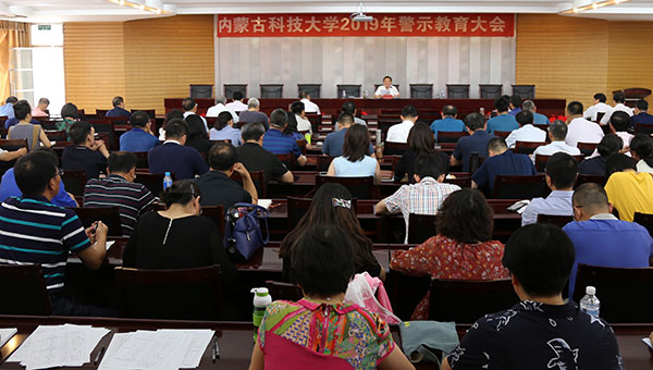 6月19日,校纪委召开2019年警示教育大会,深入学习贯彻党的十九大精神、习近平总书记在十九届中央纪委三次全会上的重要讲话和中央纪委、自治区纪委全会以及教育系统全面从严治党工作视频会议精神,进一步促进学校全面从严治党向纵深发展。纪委书记赛音庆格勒作专题警示教育,校党政领导,学术工作委员会、学生工作委员会、巡察督导工作委员会全体成员,全校正副处级干部,各教授委员会委员,各党总支、直属党支部纪检委员...