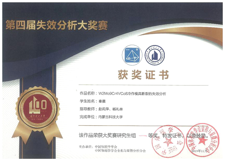 2019年第四届失效分析大奖赛暨第二届材料专业学生研究能力挑战赛于11月16日至17日在兰州理工大学举行,内科大材料与冶金学院金属材料工程专业组建研究生代表队和本科生代表队各一支,经过两天紧张激烈的比赛,荣获研究生组一等奖和本科生组二等奖的优异成绩。本次比赛由中国体视学学会、中国体视学学会金相与显微分析分会主办,兰州理工大学及其国家重点实验室承办,中国机械工程学会失效分析分会、中国机械工程学会可靠性分...