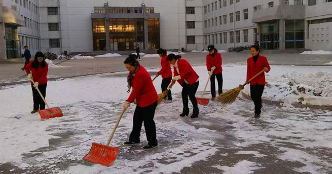 连日来的降雪,在给校园披上美丽银装同时也给师生出行带来了极大不便和安全隐患。为给广大师生营造一个安全的学习、工作和生活环境,物业中心精心组织员工铲雪除冰的同时,还广泛动员各部门在雪后积极进行铲雪除冰工作。