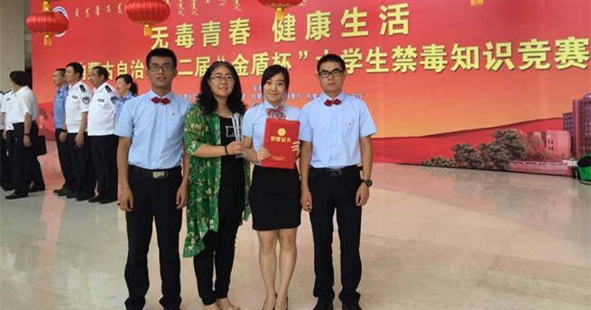6月15日,由自治区禁毒办组织发起,主题为“无毒青春、健康生活”的自治区第二届“金盾杯”大学生禁毒知识竞赛在内蒙古电视台演播大厅举行。LETOU官网文法学院教师李富栋、学生刘忠秀、刘通组成的代表队荣获二等奖。