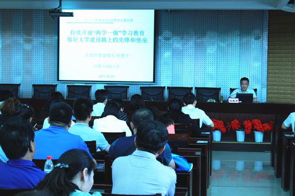 5月25日下午,校党委常委、副校长任慧平在行政楼A201为其分管和联系单位的全体党员讲《持续开展“两学一做”学习教育做好大学建设路上的先锋和堡垒》为题的党课。任慧平结合学校发展目标和实际情况阐述了“两学一做”学习教育的重大意义,分享了学习心得体会,并对全体党员提出了新的要求。任慧平强调,持续推进“两学一做”学习教育,是各级党组织的重要政治任务,在认真总结前一段工作经验的基础上,要进一步明晰“学”的...