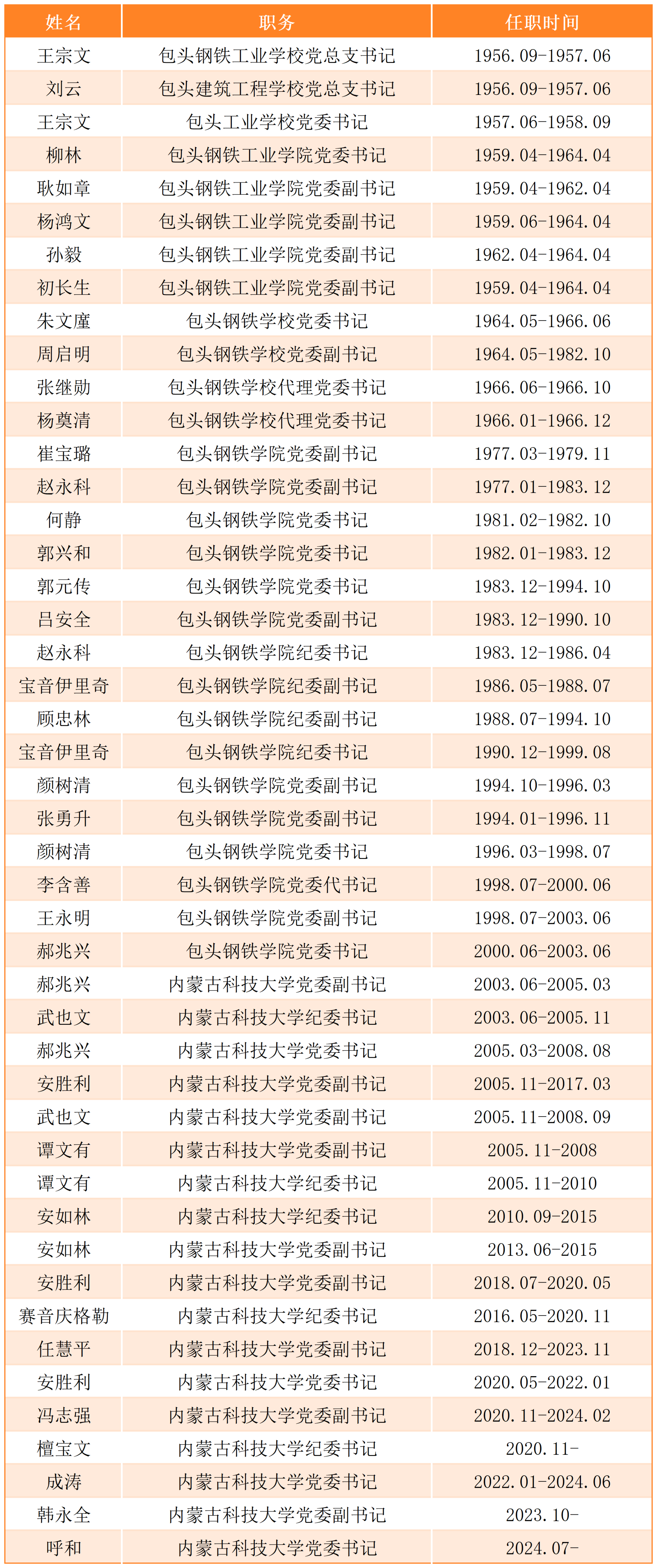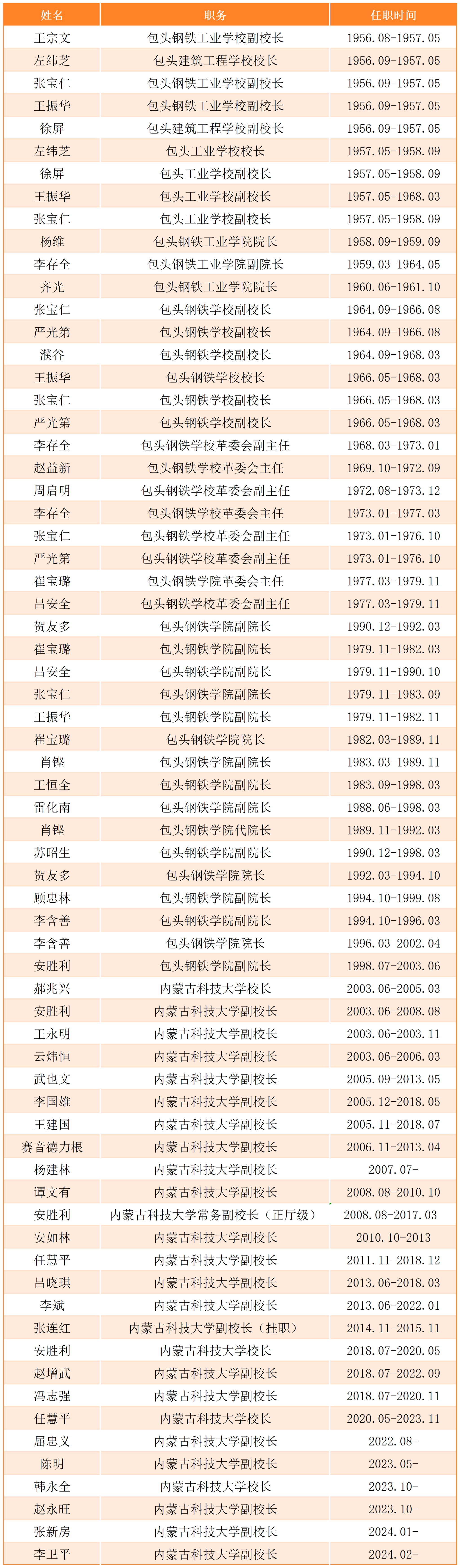 历届学校行政领导任职时间表